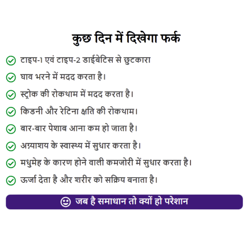 जब मैं इसे लेता हूं, तो मेरी डायबिटीज पूरी तरह से कंट्रोल में रहती है। मुझे तो ये प्रोडक्ट बहुत पसंद आया है, क्योंकि ये कैप्सूल के रूप में है, जिस कारण से इसे खाना आसान है और इसका कोई साइड इफेक्ट नहीं होता है। जहां तक इसकी कीमत की बात है, तो उस हिसाब से इसकी क्वालिटी और रिजल्ट बेहतरीन है।